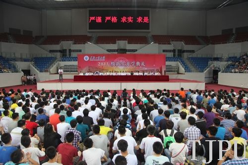 2013年9月9日上午9点,我校2013级新生开学典礼在体育馆隆重举行。校党委书记张宏伟,党委副书记、校长杨庆新,副校长肖长发,党委副书记杨吉棣、李玉翔,副校长赵宏、夏长亮,纪委书记王亚平,校长助理程博闻出席开学典礼。学校各学(部)院、及相关部、处的主要领导、部分新生家长和6000余名2013级新生参加典礼。开学典礼由学校党委(校长)办公室主任徐先林主持。