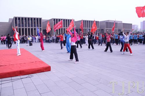 4月18日13时,我校“走下网络、走出宿舍、走向操场”主题群众性课外体育锻炼活动启动仪式在励志广场隆重举行。校党委书记张宏伟、校长杨庆新、校党委副书记杨吉棣出席了启动仪式,校办公室、宣传部、体育部等相关部门和各学院主要负责人,各学院学生代表以及体育类社团成员1000余人参加了本次活动。