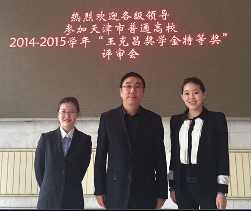 本次竞评会共有来自全市各普通高校推荐的17名优秀博士、硕士及本科生参与评选,最终评选出天津市普通高校2014-2015学年度“王克昌奖学金特等奖”十名。经过激烈的角逐,我校机械工程学院工业设计2012级本科生谷涵(右一)以优异成绩获得“王克昌奖学金特等奖”。这也是我校连续多年蝉联此项殊荣。