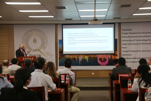 校长杨庆新教授担任本次会议主席,澳大利亚悉尼科技大学朱建国教授和华北电力大学崔翔教授担任会议联合主席。德国国家计量局J. Sievert教授、意大利都灵理工大学Carlo Ragusa教授、英国卡迪夫大学Anthony Moses教授、韩国忠北国立大学Derac Son教授、韩国朝鲜大学Wanpyo Hong教授、日本同志社大学YoshyukiIshihar教授,澳大利亚悉尼科技大学郭有光副教授,保定天威集团有限公司程志光教授级高工、沈阳工业大学谢德馨教授、西安交通大学陈振茂教授,华北电力大学李琳教授,河北工业大学徐桂芝教授等国内外众多专家到会并作了精彩报告。