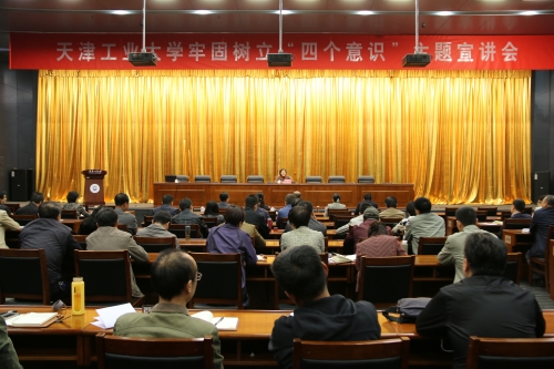 为深入宣传贯彻党的十八届六中全会精神,根据市委宣传部《关于做好牢固树立“四个意识”主题宣讲工作的通知》要求和市委教育工委工作部署,4月21日上午,我校在学术中心召开牢固树立“四个意识”主题宣讲会。全体在校校领导出席,学校全体处级干部参加。校党委书记连洁主持会议并做主题宣讲。