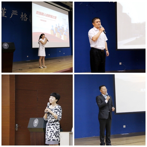 首先,校友张玉欣以激情高昂的“职场新人的职场之道”开讲,她用赋值法生动地表明了心态对于职场新人的重要性,强调作为一名职场新人,一定要以主人翁的心态去工作,工作中要把自己当主角,把工作当成是自己的事业来做,并从“自我提升方向”、“团队协作精神”等方面给毕业生提出了中肯的建议。