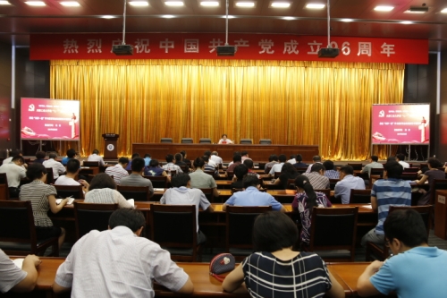 按照市委、市委教育工委和学校党委安排,同时庆祝中国共产党成立96周年,6月30日下午,校党委书记连洁在学术中心作市第十一次党代会精神宣讲报告,并结合“维护核心、铸就忠诚、担当作为、抓实支部”主题教育实践活动讲党课,全体校领导、中层领导干部、党支部书记参加会议。