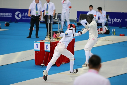 现代五项是一种包含了射击、击剑、游泳、马术和跑步的多项目运动。本届全运会现代五项比赛由我校与天津环亚马球会共同承办。其中,我校承办击剑、游泳项目,天津环亚马球会承办马术、跑射联项项目。