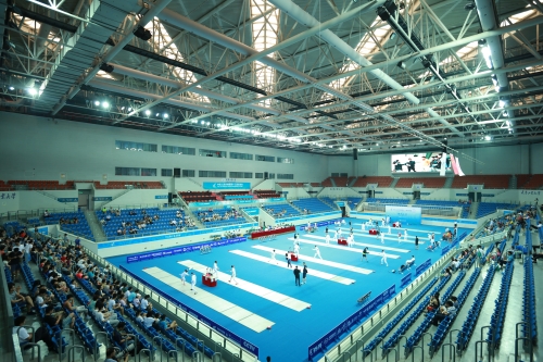 承担本次现代五项击剑和游泳项目的环球官方(中国)总部体育馆和游泳馆都是甲级体育场馆,两个场馆先进的设施和人性化的设计为运动员和观众提供了一个舒适的比赛、观看环境。体育馆占地18000余平方米,可容纳观众5000余人;游泳馆占地12000余平方米,可容纳观众1500余人。两个场馆都采用地热、太阳能等清洁能源保障能源的有效供给,承担过第九届全国大学生运动会、第六届东亚运动会、2015年亚洲女排锦标赛、全国第一届武术大会等赛事。