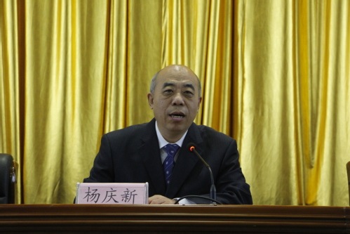 开学典礼上,杨庆新校长致辞。杨校长欢迎现场的2017级新生来到我校,选择中外合作办学项目。随后,他简要介绍了我校培养高素质创新人才的合作办学目标,并希望新生们能够努力提升英语水平,充分利用合作办学优越的学习、生活、科研环境,与国际接轨,取得人生路上的又一次成功与收获。