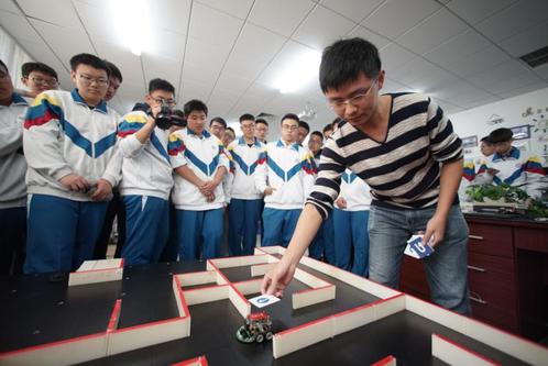 学访学生按组别前往我校10个学院(涵盖工学、理学、管理学、文学)学访实践,切身感受我校专业特色和实践氛围。学生均是高一新生,是2020年天津市高考实行“3+3”新政的首批学生,如何选取考试科目并报考合适专业关系到考生切身利益。针对这一实际,各学院在讲解学校的历史文化、校园生活、专业设置的基础上,增设特色课堂及实验互动环节,提高对学院各专业的认识,使学生结合自身爱好兴趣加深对相关学科及专业的印象。如纺织学院带领同学们体验了数字化织造、针织织造以及了解扎染蜡染工艺过程;电气学院安排了电机拖动实验、智能建筑系统等专业实验让同学们直观了解电气工程和自动化的研究方向;理学院数学系老师在讲解后,学生们动手尝试解决拜占庭将军问题;计算机学院开放物联网实验室和大创实验室让学生体验汉诺塔游戏,并操作机器人和共享柜;机械学院在讲解倒立摆的组成及应用后,学生动手参与一级倒立摆实验操作,加深对机械装置及控制原理的理解;材料学院带领学生参观新能源锂离子电池的中试生产线,近距离感受锂离子软包电池。电信、文法、外语、管理等学院也根据自身特点设计了相应的互动环节,取得良好效果。