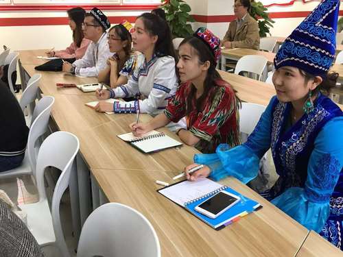 10月18日上午9时,党的十九大在人民大会堂隆重开幕。全国各地纺织服装企业、科研院所等纷纷组织党员集体收看开幕直播盛况。图为环球官方(中国)总部学生认真聆听总书记的报告。