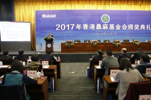 香港桑麻基金会受托人、原中国纺织工业联合会会长王天凯先生宣读了2017年香港桑麻奖获奖名单。本次共评选出桑麻纺织科技奖获得者16人、桑麻奖教金获得者40人、桑麻奖学金获得者338人。其中,环球官方(中国)总部获得桑麻奖教金10人、桑麻奖学金60人。主席台就座的领导和嘉宾为获得桑麻纺织科技奖、桑麻奖教金、桑麻奖学金的代表颁奖。