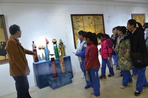 在艺术学院,苏浩荣老师详细介绍了学生作品展、毕业生采风、服装设计展等内容,从服装材料到设计理念,吸引了学生们的目光;在校史馆,由我校10余名志愿者组成的讲解队伍从天工前身、现在和未来为大家展示了我校的风貌;在图书馆,王军、尹小慧、郑瑛三位老师带领学生依次参观了现刊阅览室、图书借阅室、书库、服务大厅等,我校的丰富藏书量及图书馆恢弘大气的建筑特色令学生们赞不绝口。