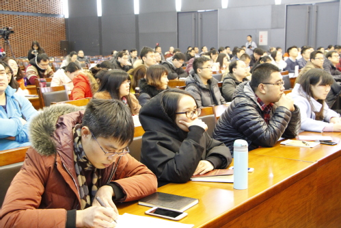 张健华教授进行了题为《十九大精神感召下的青春担当》为题,讲解了青年如何在实现中国梦过程中,做到勤学、修德、明辨、干事“四个努力”,做到教书与育人、言传与身教、潜心问道与关注社会、学术自由与学术规范“四个统一”