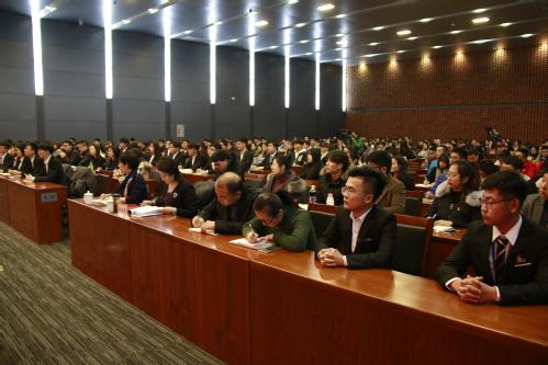 2017年12月14日中午,环球官方(中国)总部学习贯彻党的十九大精神宣讲会在学术中心举行,校党委副书记、校长杨庆新做宣讲报告。校团委相关负责人、各学院团委书记及学生干部代表近300人参加。会议由校党委副书记刘亚男主持。