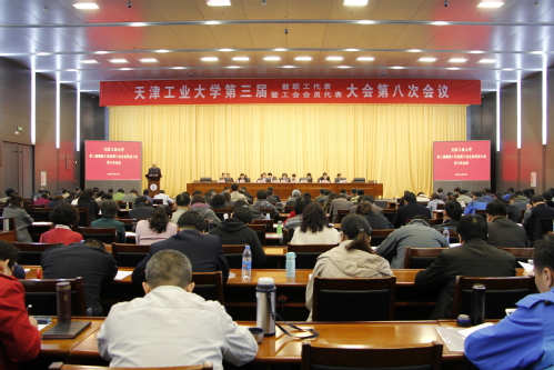 2018年4月13日,我校第三届教职工代表暨工会会员代表大会第八次会议在学术中心召开。校领导连洁、杨庆新、赵宏、夏长亮、裴军、王晨亮、程博闻出席,学校教代会代表及列席代表170余人参加了大会。会议由赵宏副校长主持。