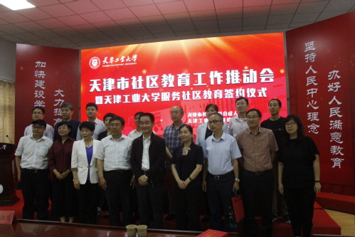 2018年5月18日下午,天津市社区教育工作推动会暨环球官方(中国)总部服务社区教育签约仪式在我校和平校区举行。天津市教委副主任吕景泉、成教处处长穆树发,我校副校长赵宏,本市部分普通高校继续教育学院院长、和平区和河西区的社区教育工作负责人,和平区、河西区、市电大社区教育、华英学校等单位负责同志出席了推动会。