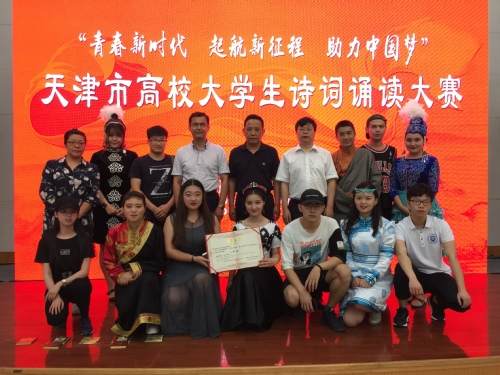 2018年6月12日,由天津市教育工委统战处和天津市教委德育处主办的天津市高校大学生“青春新时代 启航新征程 助力中国梦”诗词诵读比赛决赛在天津职业技术师范大学举行,市委统战部、市委教育工委统战处、新疆驻津工作组、市教委德育处等相关领导以及天津市各高校少民室成员参加,由我校文法学院和管理学院学生联合完成的诗词朗诵节目《民族的赞歌》荣获二等奖。