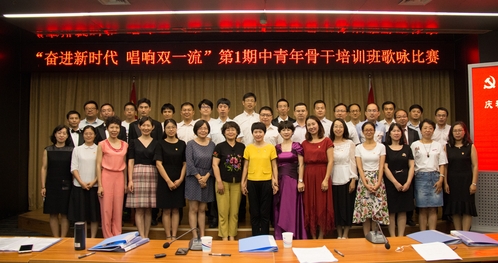 为深入学习宣传贯彻习近平新时代中国特色社会主义思想和党的十九大精神,庆祝中国共产党成立97周年,党校第1期中青年骨干培训班“迎七一”歌咏比赛于2018年6月21日晚,在党校党员活动室举行,全体学员用歌声为建党97周年献礼。