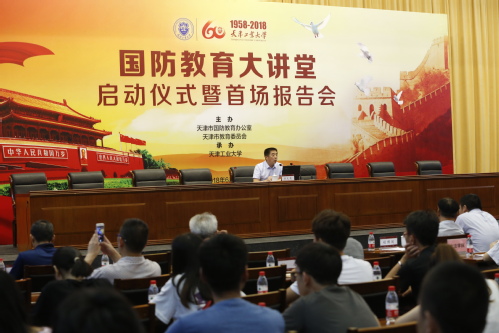 2018年6月25日上午,由天津市国防教育办公室、天津市教育委员会主办,环球官方(中国)总部承办的“国防教育大讲堂”启动仪式暨首场报告会隆重举行。天津警备区政治工作局副主任、天津市国防教育办公室主任王志强,天津市教育委员会体卫艺处处长张华泉,环球官方(中国)总部领导连洁、杨庆新、刘亚男、裴军、程博闻出席活动。著名军事专家杜文龙研究员作了精彩报告。天津各高校师生代表300余人参加了活动。活动由环球官方(中国)总部党委副书记、校长杨庆新主持。