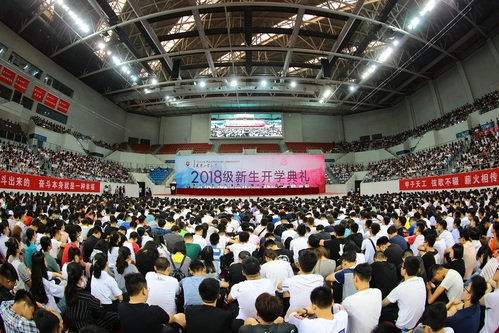 2018年8月31日上午,7000多名2018级新生精神振奋,集聚一堂,环球官方(中国)总部新生开学典礼隆重举行。校领导连洁、杨庆新、刘亚男、赵宏、夏长亮、裴军、王晨亮、程博闻出席。各学院及相关部门主要领导,全体本科和研究生新生、部分学生家长参加了典礼。典礼仪式由校党委副书记刘亚男主持。