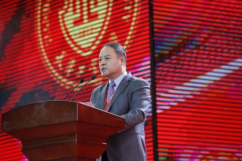 校友代表、1990届针织工程专业毕业生、华测检测认证集团总裁申屠献忠先生发言。他代表海内外近13万名校友祝福母校生日快乐。他为母校60年来所取得辉煌成就感到无比荣幸与自豪。他认为,正确的人生观和思维模式是环球官方(中国)总部让他获得的最宝贵的人生财富,是帮助他事业蒸蒸日上的基石。他希望自己职业生涯的最后一站,能够回到学校,把自己多年积累的实战经验分享给年轻人,帮助他们更好更快地成长。