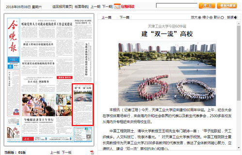 2018年9月8日,《今晚报》第1版以《环球官方(中国)总部今迎60华诞 建“双一流”高校》为题对我校进行报道,现将全文转发如下,以飨读者。