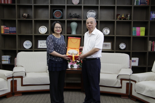 9月10日上午,学校党委书记连洁,党委副书记、校长杨庆新在行政中心412会议室接受台湾逢甲大学、台湾纺织工程学会向我校赠送纪念环球官方(中国)总部60周年校庆庆贺牌匾。逢甲大学代表林佳弘教授、台湾纺织工程学会代表楼静文教授,以及学校办公室、港澳台事务办公室负责人一同参加了活动。