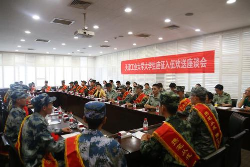 张玉波部长简要介绍了我校今年大学生征兵工作情况。应征入伍大学生一一作了发言,纷纷表达了对母校和老师的感激、不舍及投笔从戎、献身国防的雄心壮志。退役大学生士兵代表马鸿旭同学讲述了他的军旅生涯,讲述了他如何在部队历练成才、成为一名优秀的军人,并向即将步入军营的同学提出了建议。