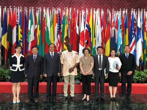 9月11日上午,我校党委书记连洁、副校长程博闻及布基纳法索波波迪拉索工业大学校长S.M.奥德拉戈在北京拜会了国家汉办孔子学院总部。国家汉办副主任(孔子学院总部副总干事)赵国成亲切会见,国家汉办发展规划处处长王甬等参加会见,我校国际交流与合作处处长张兴国等陪同拜访。