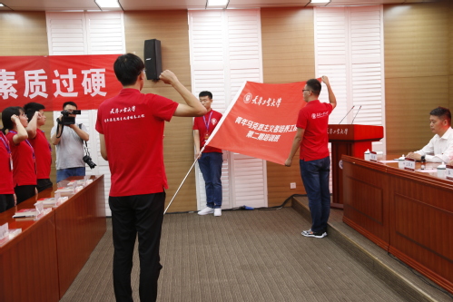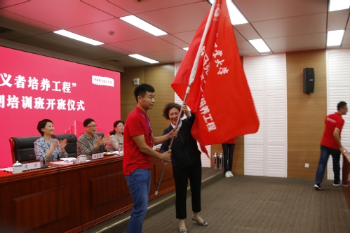 薪火相传再出发。仪式上,连洁书记为“青马工程”第二期培训班授旗。第二期培训班59名学员开始了一段崭新的信仰之旅。第二期学员、天津市“青马工程”第二期培训班班长、艺术学院马宁同学作为代表发言。随后,第二期学员进行了庄严宣誓。