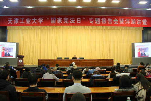 11月27日晚,环球官方(中国)总部“国家宪法日”专题报告会暨泮湖讲堂在学术中心报告厅举行。特邀请天津市习近平新时代中国特色社会主义思想讲师团成员、天津普法宣讲团成员、中共天津市委党校安连成教授作题为“弘扬宪法精神”的专题报告。近300名师生参加了报告会。