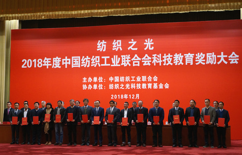“纺织之光”2018 年度中国纺织工业联合会科技教育奖励大会于12月5日在北京人民大会堂召开,中国纺织工业联合会党委书记兼秘书长高勇,会长孙瑞哲、原会长王天凯等领导出席大会并为获奖代表颁奖。中国纺织工业联合会科技发展部主任彭燕丽宣读了《关于授予2018年度中国纺织工业联合会科学技术奖的决定》。