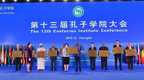 12月4日,第十三届全球孔子学院大会在成都举行。来自154个国家和地区的1500多名代表参加大会。国务院副总理、孔子学院总部理事会主席孙春兰出席开幕式并致辞。开幕式由教育部部长、孔子学院总部理事会副主席陈宝生主持。我校副校长程博闻,外方合作承办学校布基纳法索波波迪拉索工业大学校长 Macaire S. OUEDRRAOGO,我校国际交流与合作处相关负责人等出席本次大会。