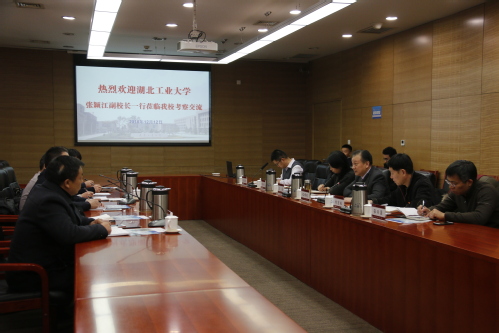 2018年12月12日下午,湖北工业大学副校长张颖江一行6人到我校走访调研。我校副校长程博闻会见了张颖江副校长一行,校组织部、科技合作与成果管理处、战略发展研究中心、国际交流与合作处、信息化中心相关负责同志陪同调研。