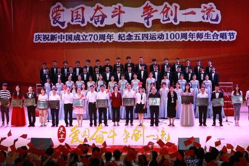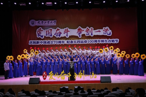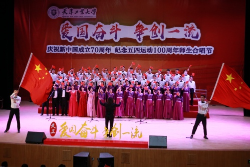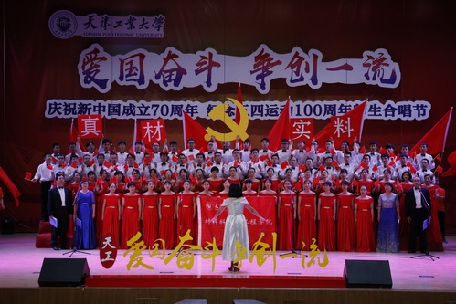 唱响新时代传承爱国情“庆祝新中国成立70周年 纪念五四运动100周年师生合唱节”5月23下午在我校艺缘礼堂举行,这是我校“爱国奋斗 争创一流”主题教育活动的重头戏之一。校党委书记连洁,党委副书记刘亚男,党委常委刘宏韬、王军杰、张健华,各基层党委、党总支、直属党支部主要负责人和师生代表,现场观看了这场精彩的红色盛典。此次合唱大赛共有包括机关分党委和15个学院党委在内16支队伍参赛,近半数中层干部带头参加。大家情绪饱满,激情四溢,歌声高昂,展现出对祖国发自内心的热爱,表现出对天工大发自内心的自豪,表现出天工大“爱国奋斗 争创一流”的精气神。