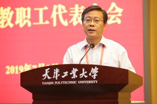 2019年7月2日至3日,我校第四次教职工代表大会在学术中心隆重召开。学校党委书记连洁,校长夏长亮,党委副书记胡英江、陈泮成,副校长赵宏,纪委书记裴军,副校长王晨亮及全校教代会代表和列席代表参加了大会。大会由党委副书记胡英江主持。