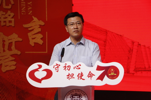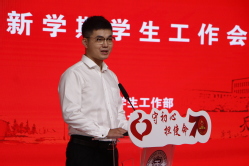 校党委副书记胡英江首先向2019年新聘用辅导员表示热烈的祝贺,肯定了2019年上半年学校学生工作取得的成绩,并就2019年下半年学生工作提出几点希望。希望广大学工战线的老师们进一步提高政治站位、牢记初心使命,努力担当作为、爱岗敬业奉献,守正创新、主动学习,真正做到贴近学生、关心学生、服务学生。