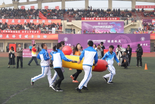 校长夏长亮院士在致开幕辞中强调,今年是新中国成立70周年。70年来,中国人民在中国共产党的领导下创造了举世瞩目的成就,迎来了实现中华民族伟大复兴的光明前景。作为天工人,在由衷感到自豪、骄傲的同时,更需要我们把激发出来的爱国奋斗精气神转化为奋进新时代的强大动力,担当新使命,展现新作为。夏长亮校长指出,体育工作是一项关系人才培养的重要工作。我校有着广泛的群众体育运动基础和较高的竞技体育水平,他希望全校师生牢固树立健康第一的教育理念,坚持体育运动,弘扬体育精神,在运动中享受快乐与健康,在锻炼中健全人格与锤炼意志,在奋斗中感受收获与幸福。