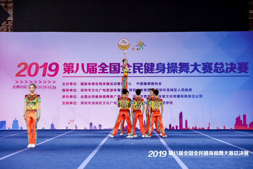 20191121日至25日,第八届全国全民健身操舞大赛总决赛在深圳市体育运动学校综合馆举行。本次大赛由国家体育总局体操运动管理中心、中国健美操协会主办,全国全民健身操舞推广委员会承办。