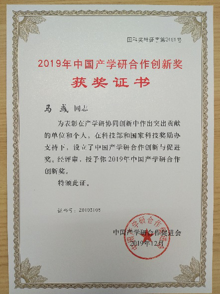 我校马彧教授荣获“2019年中国产学研合作创新奖”