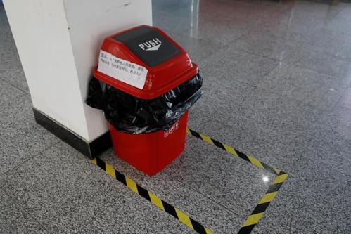 学生返校后将实行公寓区域化封闭管理。学生公寓楼内设置了废弃口罩专用垃圾桶,张贴着“七步洗手法”标识和消毒通风制度。