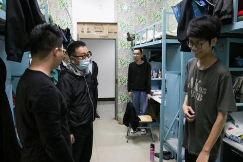 俞绍平书记来到东北门,实地查看了返校学生进校核验情况,对安保工作表示充分肯定,指出安保工作人员要严格程序,引导返校学生扫码验证、测温、消毒等。他又来到东苑学生宿舍,和返校学生拉家常,欢迎同学们返校回家,并叮嘱同学们加强个人防护,做好宿舍卫生清洁和通风。他鼓励大家认真学习,弘扬爱国奋斗精神,争做新时代优秀青年。他要求相关职能部门严格落实疫情防控和复课开学工作方案,努力为学生提供暖心服务。