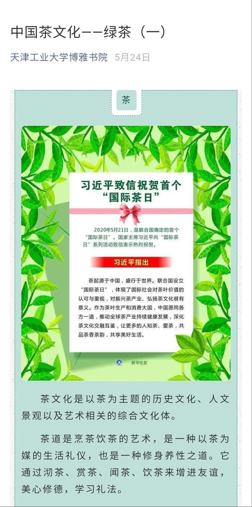 举办“茶和世界、茶悦人生”主题讲座及茶艺体验。在首个“国际茶日”来临之际,书院邀请天津市茶艺师王晓丽开展主题讲座,推广茶文化。