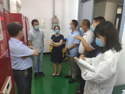 市教委专家组对我校材料科学与工程学院、化学与化工学院、环境科学与工程学院、科研中心等区域进行了检查,重点检查了科研和教学实验室、药品暂存室、废液暂存室等,并随机抽查了实验室安全制度建设、个体防护、化学品存放及使用、应急处置设施使用和维护等情况。专家组对加强我校实验室人员安全防护、设备维护更新等工作提出了指导意见。