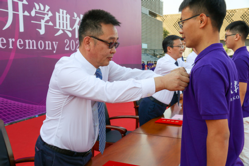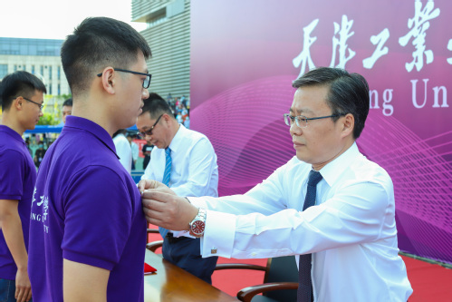 校党委书记俞绍平、校长夏长亮院士为新生代表佩戴校徽。6839名新生同时将崭新的校徽佩戴于胸前,正式拥有了“天工人”的新名字新身份,担当起努力学习、增长才干,为天工增光添彩的新使命。全体新生佩戴校徽,为新生入学增加了庄严的仪式感。