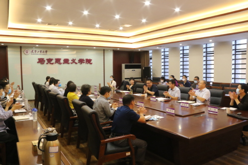 2020917日上午,校党委书记俞绍平、党委副书记陈泮成来到马克思主义学院实地调研并参加形势与政策课集体备课会。马克思主义学院领导班子全程陪同、形势与政策课教研室全体授课教师参会。
