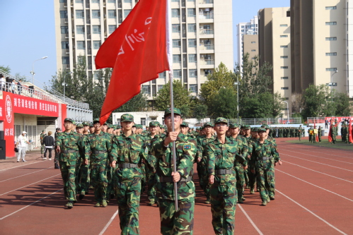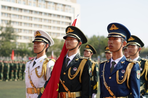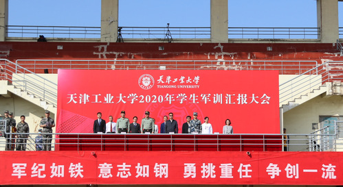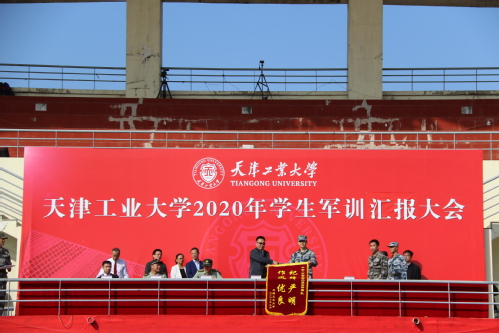 930日上午,我校2020年学生军训成果汇报大会在望星体育场举行。天津警备区学生军训工作办公室主任辛维刚,河东区武装部政委王卫东,中国人民解放军93688部队副政委李晋,中国人民解放军93688副教导员、学校军训团团长丁聪,校党委书记俞绍平,校党委副书记陈泮成出席。学校相关职能部门、各学院负责人,全体承训官兵和全体参训学生参加。大会由人民武装部部长张志勇主持。
