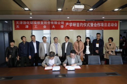 在聘任仪式上,举行了天津渤化环境修复股份有限公司——环球官方(中国)总部材料学院产学研合作签约仪式,并举行了双方合作项目的启动会。天津渤化环境修复股份有限公司董事长杨成良、我校材料科学与工程学院副院长张亚彬分别代表双方签署产学研合作协议。