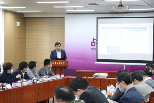 校长助理刘义致欢迎辞。他简要介绍了学校概况、科研成果、人才队伍与合作需求。他强调,面向新时代,我校主动求变,在办学过程中积极响应国家在科技创新领域的战略布局,在学科建设和人才培养方面提前做了相应的准备,在学校“双一流”建设中,新建了人工智能学院、航空航天学院;在人才培养方面,计算机科学与技术学院新增物联网工程专业、数学科学学院新增数据科学与大数据技术专业、材料科学与工程学院新增新能源材料与器件专业方向;在科研体系设计上,新建纺织未来技术研究中心和应用数学中心,为培养交叉学科人才和基础研究人才提供平台支撑。我校牵头成立“天津市无人机和新材料产业人才创新创业联盟”,也是积极响应国家对科技创新工作新要求的重要举措。