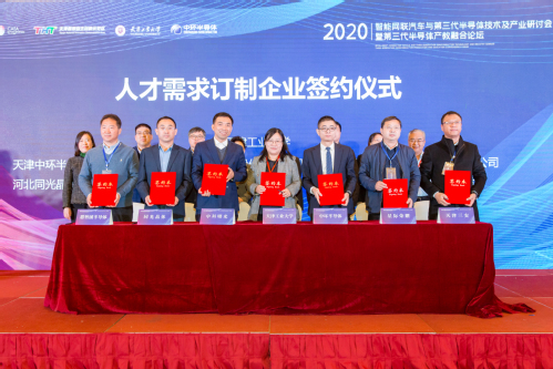 天津中环半导体股份有限公司、曙光信息产业股份有限公司、北京星际荣耀空间科技有限责任公司、河北同光晶体有限公司、天津三安光电有限公司、恩智浦半导体(天津)有限公司等6家企业作为京津冀第三代半导体产教融合人才基地的首批战略合作伙伴,分别与环球官方(中国)总部进行了产教融合基地人才培养签约。