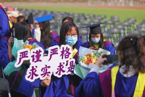 人文学院毕业研究生陈佳说:“研究生时光虽然短暂,但回望走过的路,有过曲折,更多的是成长。感恩导师和各位老师的教导和培养,感恩家人的陪伴,感谢同学、朋友的帮助。毕业,是我们未来努力前行的开始,愿我们脚下有风,不负青春!”