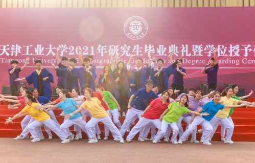 典礼开始前,现场进行了爱国歌曲、校园歌曲联唱,播放了为毕业生精心制作的视频天工版《入海》,满满的青春挥洒,难忘的奋斗记忆。